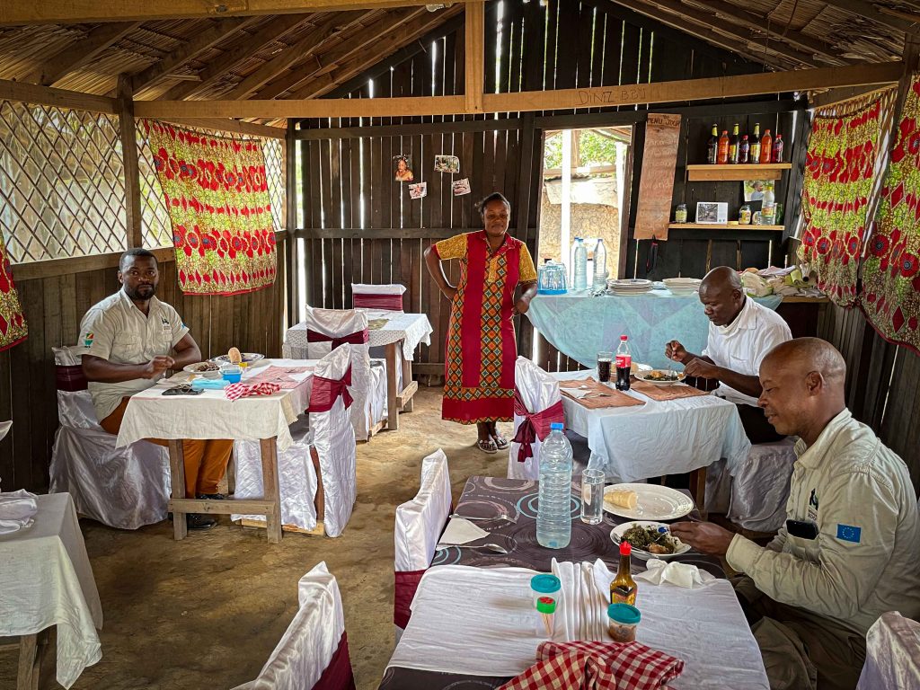 A new sound can be heard ringing out across the Sangha River in the rainforests of northern Congo—the clinking of cups and cutlery at Saida Nola’s new restaurant. ‘Maman Saida’ as she is affectionately known in Bomassa village started her restaurant, ‘La Main de Dieu’, on the banks of the river in January 2019. At the time, it was the first real place that people could find a meal in the village outside of their homes.