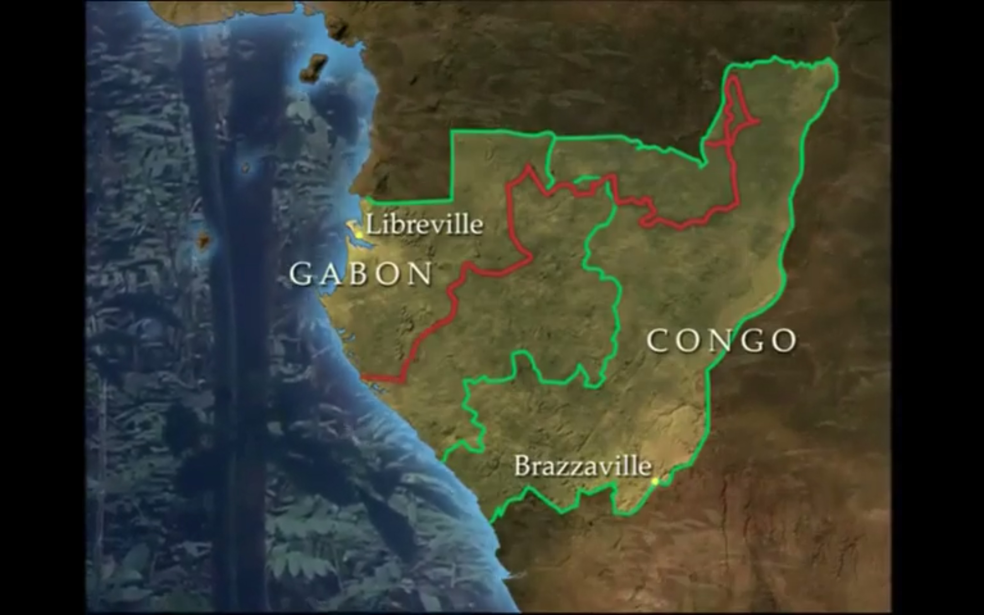 The route that Michael J. Fay followed, starting from Bomassa, Nouabalé-Ndoki National Park’s main base, in Congo. ©National Geographic